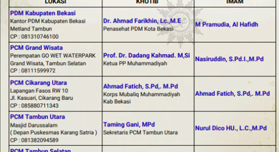 Bekasi-Pimpinan Daerah Muhammadiyah (PDM) Kabupaten Bekasi menyiapkan 12 lokasi pelaksanaan sholat Idul Fitri 1447 H yang tersebar di beberapa titik di Kabupaten