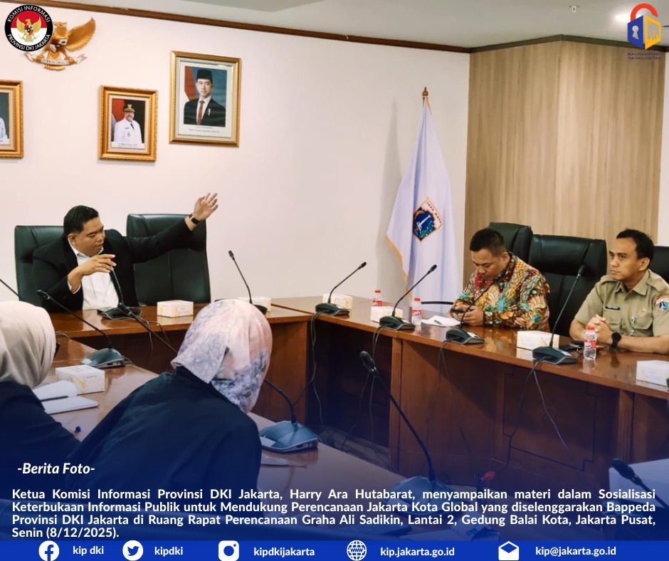 Penegasan tersebut disampaikan Harry dalam kegiatan Sosialisasi Keterbukaan Informasi Publik untuk Mendukung Perencanaan Jakarta Kota Global yang berlangsung di Ruang Rapat Perencanaan, Graha Ali Sadikin Lantai 5, Balai Kota Provinsi DKI Jakarta, Senin (8/12/2025).