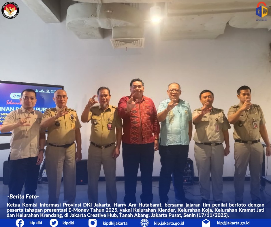JAKARTA – Komisi Informasi Provinsi DKI Jakarta menggelar hari keenam tahapan presentasi Electronic Monitoring and Evaluation (E-Monev) Badan Publik Tahun 2025 di Jakarta Creative Hub (JCH), Gedung Graha Niaga Thamrin, Jakarta Pusat, Senin (17/11/2025).