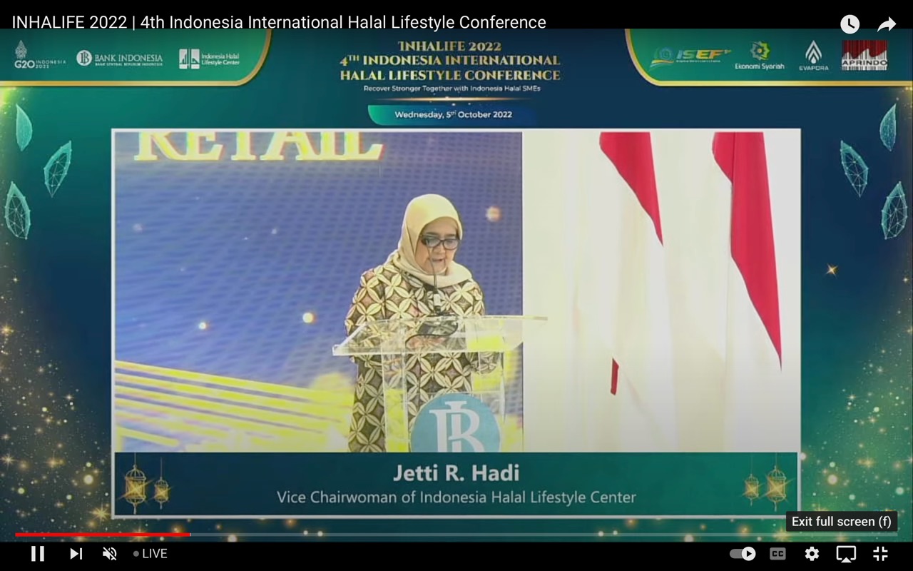 Pada kesempatan yang sama, Vice Chairwoman Indonesia Halal Lifestyle Center (IHLC), Jetti Rosila Hadi menyampaikan beberapa hal yang dilakukan selama gelaran Indonesia International Halal Lifestyle Conference atau INHALIFE 2022 dalam rangka mendorong UMKM Indonesia masuk ke dalam modern retail.
